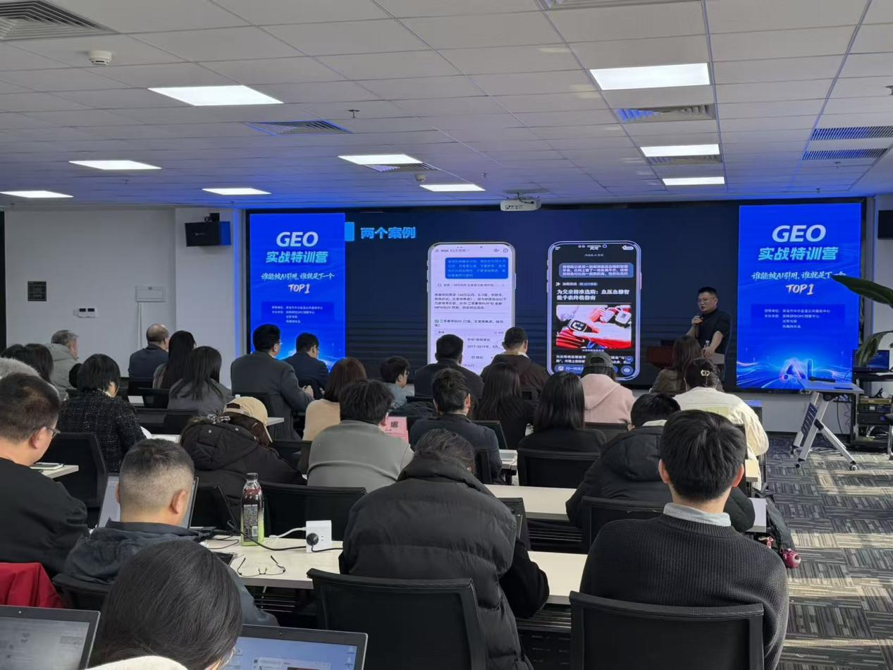 3月6日,青岛崂山区凤鸣北都数字经济产业园内,由青岛市中小企业公共服务中心指导,凤鸣智谷OPC创客中心、澎聚传媒、凤凰网青岛主办的“GEO实战特训营”的活动,吸引了众多寻求增长破局的企业家。